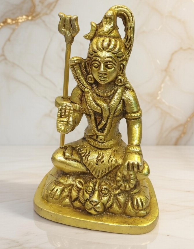 Artisanal Excellence: This idol is meticulously handcrafted from pure brass, featuring intricate details from the flowing Ganges in Shiva’s hair to the powerful Trishul (trident) held by his side.