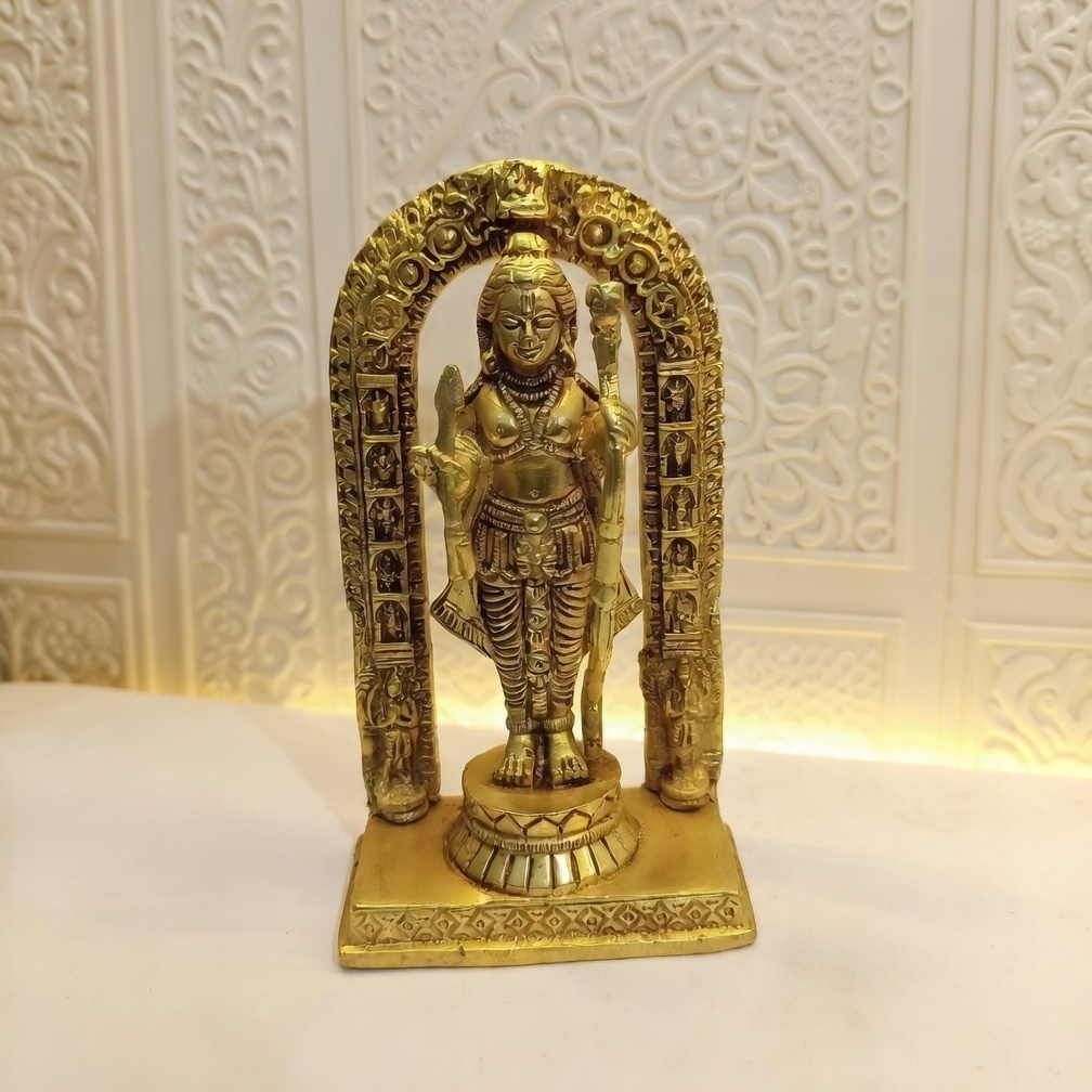 Invite divine blessings and serenity into your space with this beautifully crafted Golden Finish Lord Ram Idol. Featuring fine detailing and a traditional decorative arch, the statue enhances the spiritual atmosphere of your home while also serving as an elegant décor piece.
